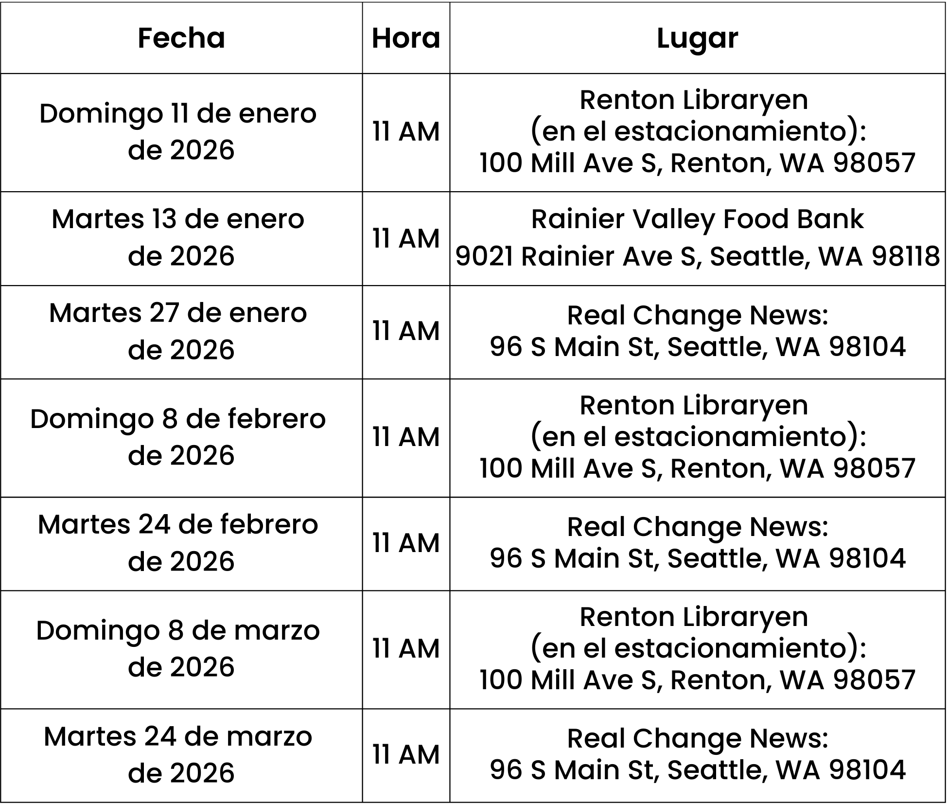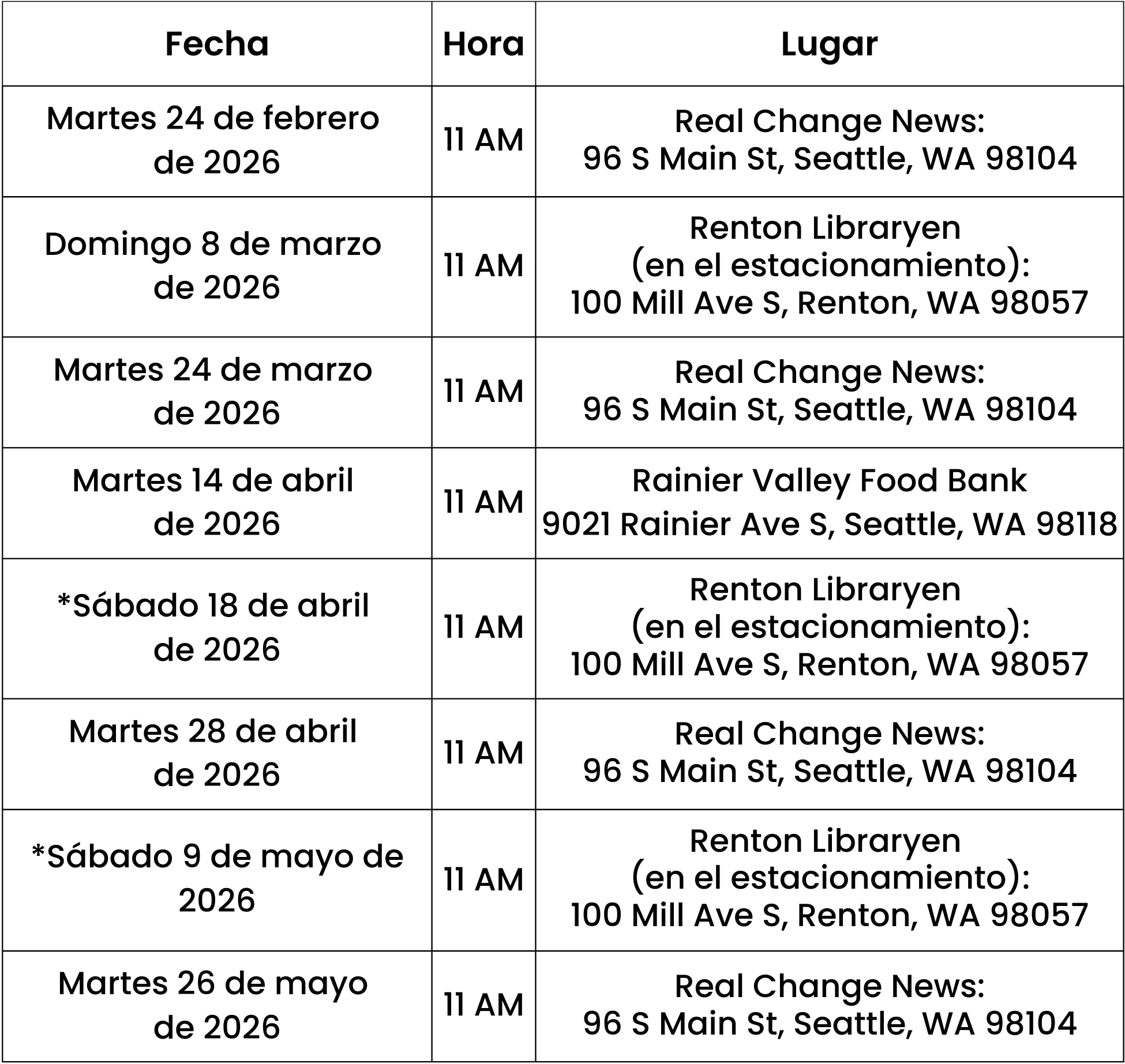 Todos los servicios se prestan sin cita y por orden de llegada. Recomendamos que llegue antes de que abra la clínica. Esté preparado para esperar a que lo atiendan, así que asegúrese de tener aquello que necesite para sentirse cómodo. Hacemos todo lo posible para atender a todos nuestros pacientes lo más rápido posible mientras prestamos cuidados de alta calidad a cada familia. Por favor, recuerde que somos un equipo pequeño y que no tenemos la capacidad de atender a todas las mascotas que vienen a la clínica. Estamos agradecidos por su comprensión y paciencia mientras trabajamos duro para satisfacer las necesidades de nuestra comunidad.